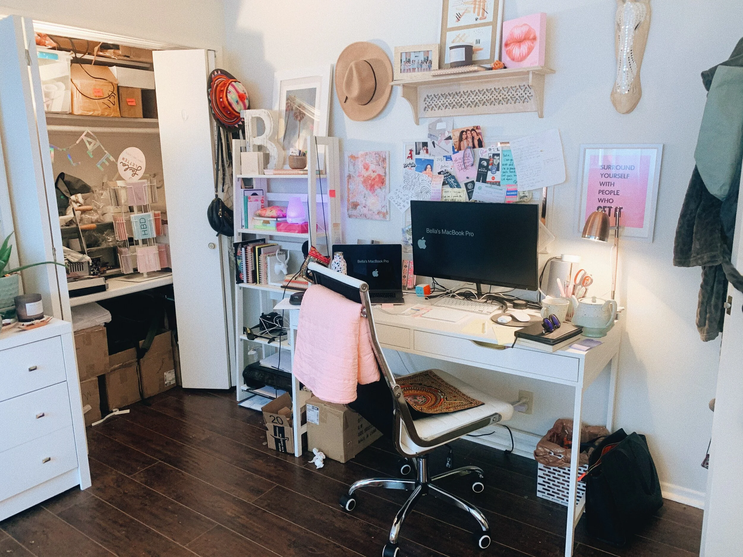 For me my room was overrun with unused space of a past endeavor, Lala Letter. While I love that business and that time of my life to pieces, it no longer takes up space in my mind—so why should it take up space in my room. I wanted my space to not just reflect where I am currently, but where I want to be.